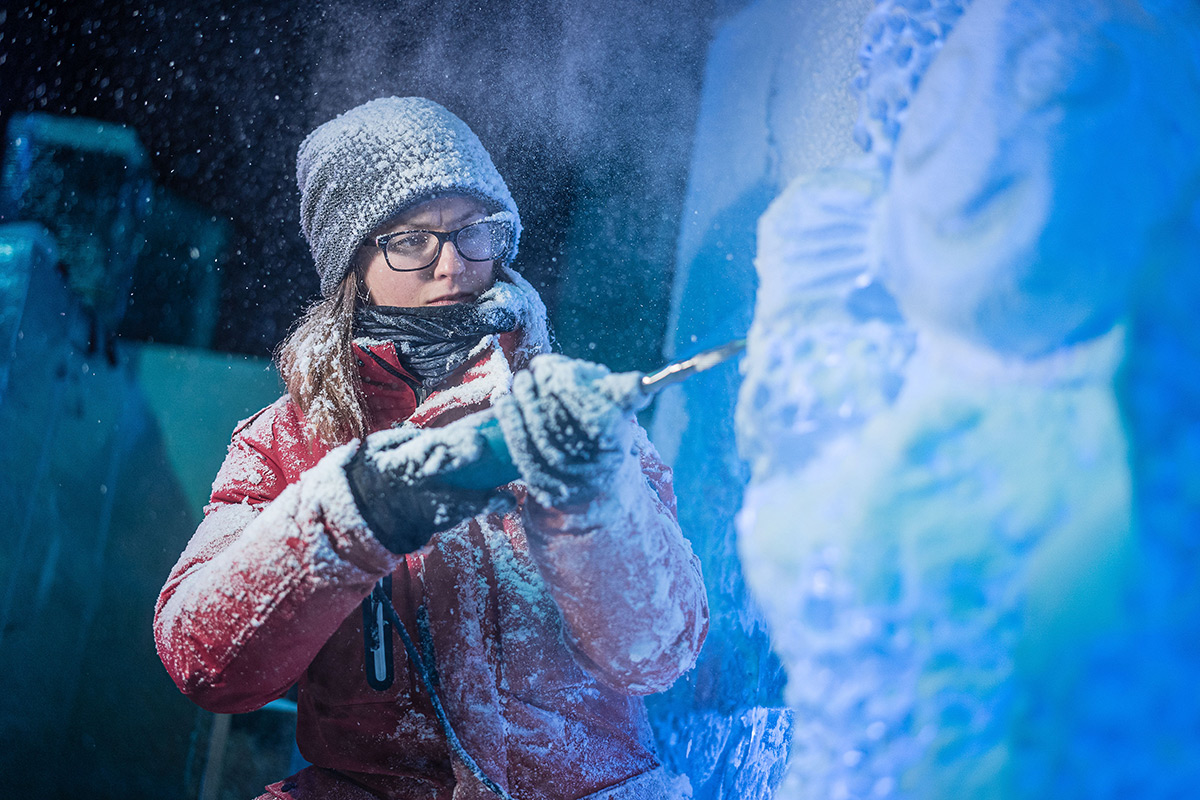 Einmalig, detailverliebt und bis zu 6 Meter hoch. 35 internationale Künstler: innen (darunter Weltmeister) schnitzen den Karneval in Eis und Schnee.